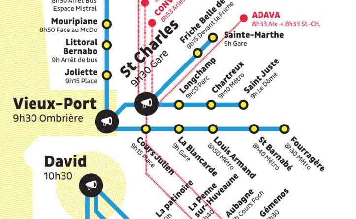 - Sainte Marthe 9h00, Friche Belle de Mai 9h15, Gare St Charles 9h30 direction vieux port