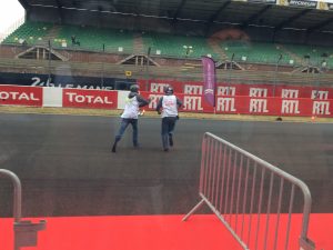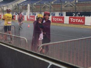 Les jambes sont de plus en plus lourdes, les chronos de plus en plus éloignés des records et les tours paraissent de plus en plus longs à chaque fois. Thomas et Louis sont désignés pour boucler la boucle. Ils partent chacun de leur côté et décident de s’attendre en haut du Dunlop pour terminer ensemble. Il est 15h45 les relais sont désormais interdits et tous les coureurs sur la piste vont devoir finir. L’ambiance est exceptionnelle, les coureurs sont applaudis et encouragés lors de leur passage sur la ligne droite des paddocks, tout le monde est debout sur les murets essayant d’apercevoir le représentant de son équipe. Thomas et Louis passent deux fois les bras en l’air main dans la main : On l’a fait !  Toute l’équipe est fière du chemin parcouru.