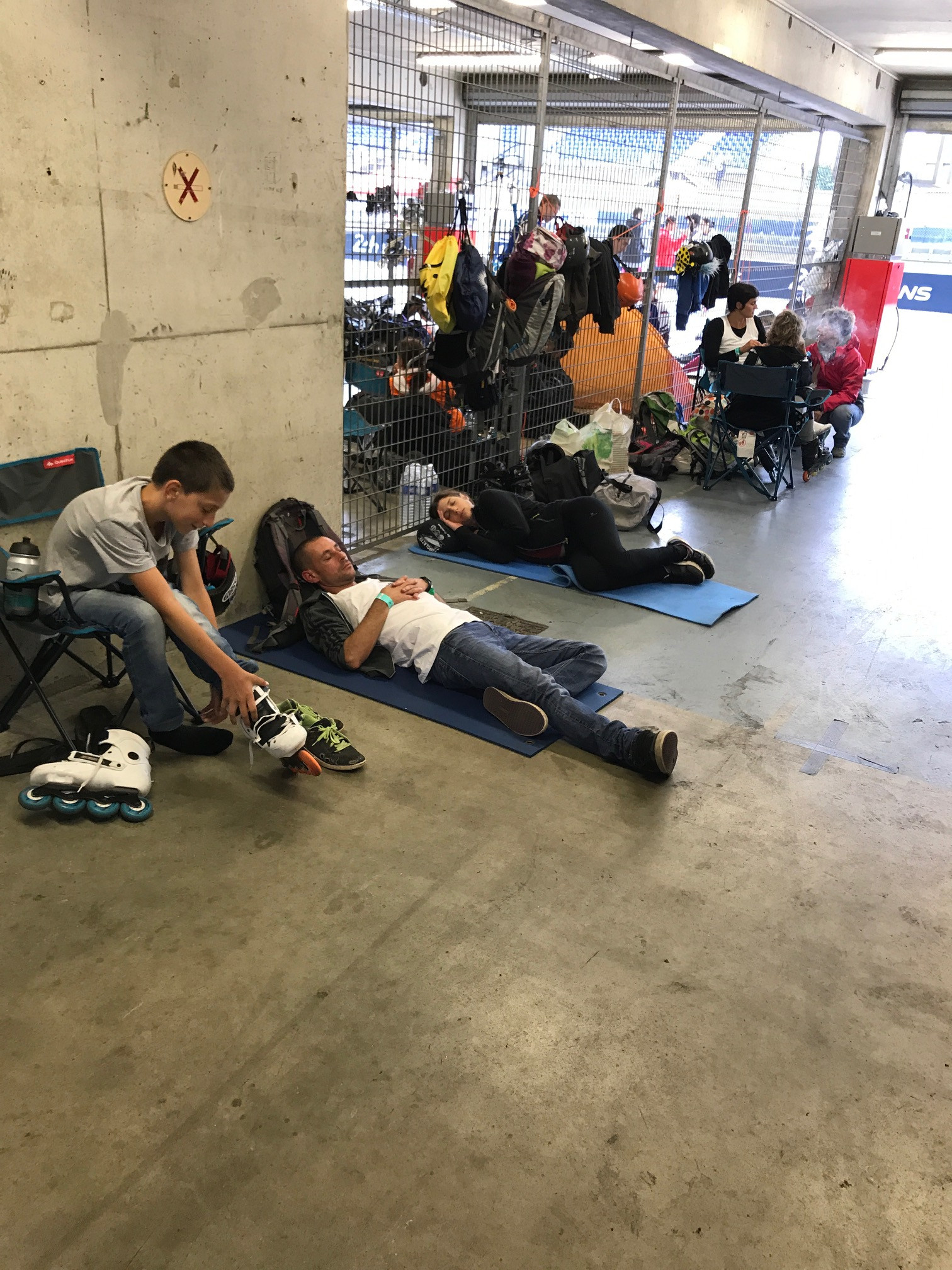 A partir de ce moment jusqu’au départ la fourmilière se met en place : certains vont récupérer la zone du paddock attribuée à l’ASGUM, d’autres y transportent tout le nécessaire (chaises, nourriture, etc…) pendant que d’autres préparent le déjeuner et que Richard et Fred vont chacun de leur côté se prêter au jeu des qualifications.