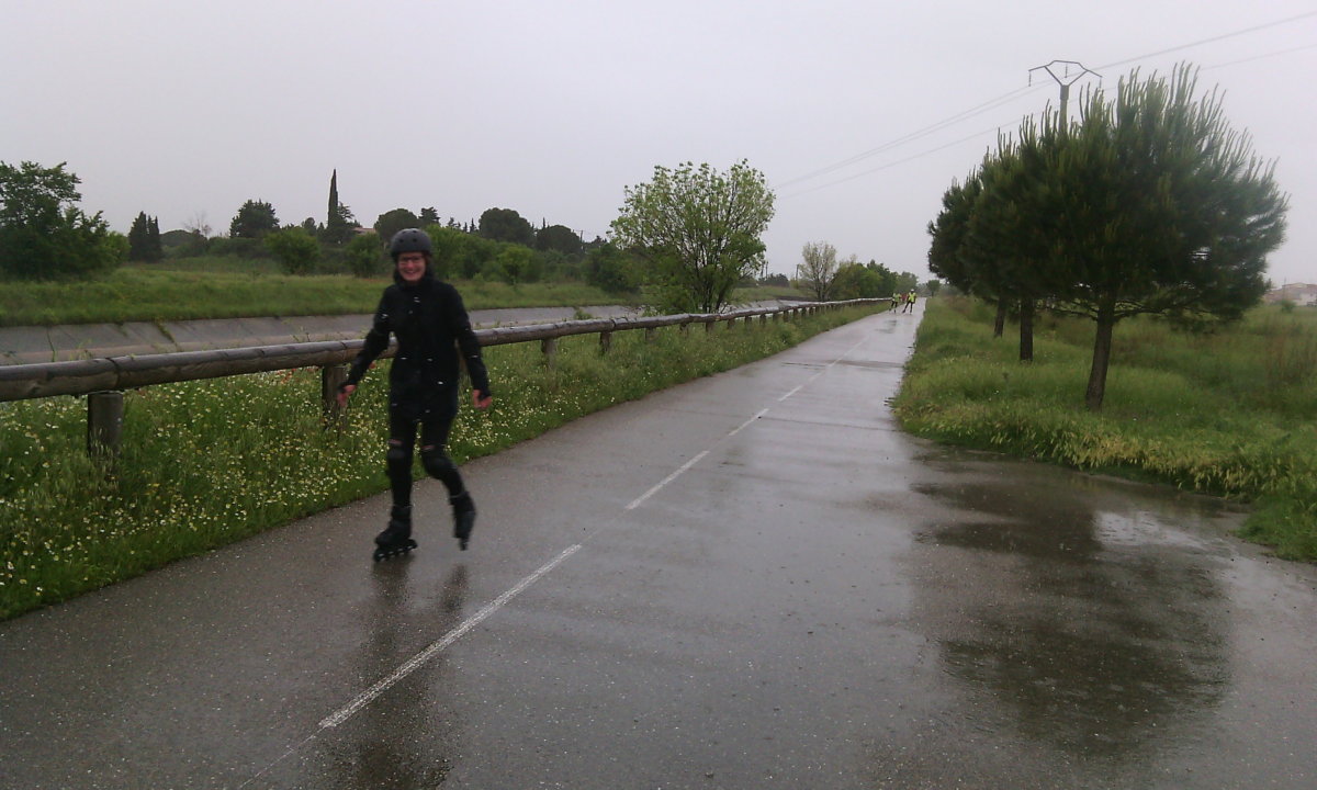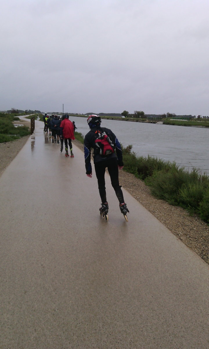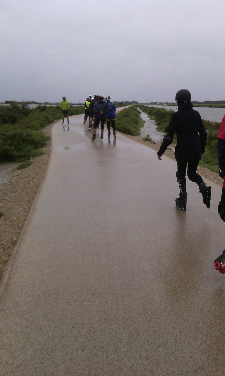 Deux semaines qu’on regardait la météo, sur toutes les applis possible, météo marine au Grau-du-Roi, météo France à Aigues-Mortes, la chaîne météo à Vauvert…. Deux semaines que les prévisions changeaient quotidiennement. Et elle était là. La pluie, du début à la fin, en bruine, en averses, avec du vent et du sable. Pas prévu par contre, le froid était de la partie : 7,5°C au départ, et ça n’a jamais vraiment remonté.