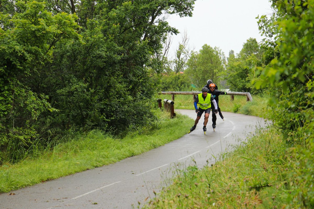 Une bonne vingtaine de patineurs, hors staff, ont quand même pris le départ avec le sourire. La rando se passant quasi exclusivement sur voie verte, cela a permis rapidement à un petit groupe plus rapide de prendre ses aises. Toujours bien encadrés, chacun a ainsi pu rouler à son rythme. Petit clin d’œil à Clémence qui n’a pas rechigné à l’effort et aura parcouru ses 50km.